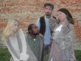 | OCTOBER 17 - NOVEMBER 3 , 2002 Gorilla Theatre Productions takes a hard look at life during wartime with its showcase productions of 'Mother Courage and Her Children' by Bertolt Brecht. Brecht's masterpiece follows Mother Courage during Germany's Thirty Years War as she struggles to keep her children alive and immune from the war's effects. Her livelihood depends on the unending war that she follows from battle to battle, pulling a wagon loaded with merchandise that she sells to soldiers. Interspersed with dramatic songs and vignettes, Brecht gives us a chronicle from the Thirty Years War that reflects on our lives today. |